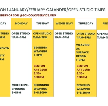 Please Note: If you require any special accommodations for your class, please get in touch with our Fibers studio manager at FIBERS@schoolofservice at least 2 weeks before the start of your class so we can make appropriate arrangements to accommodate you.